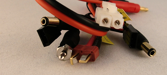 Cavo cablato con connettori BANANA √ò 4,0 mm MASCHI e con connettori DEANS-TAMIYA-JR Tx/Rx-FUTABA Tx/Rx utile per caricare differenti batterie e TX.