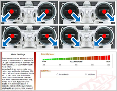 Nella maggior parte delle condizioni, l’intero multirotore mantiene un buon assetto e ruota intorno al braccio del telaio con potenza in uscita nulla, a causa della struttura meccanica squilibrata e dell’ambiente esterno. La rotazione è causata principalmente dal carico e dall’ambiente esterno. Più il carico è pesante maggiore è la velocità di rotazione. Ruotando, la struttura fisica esarotore comporta un timone fuori controllo. Questa funzione di protezione della Naza-M V2, in modalità Assetto o GPS, rende l’assetto ancora sotto controllo, anche con qualsiasi alimentazione mancante e riduce altamente il rischio di incidenti.