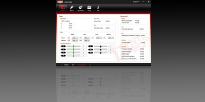 Le impostazioni di default dei parametri sono OK per effettuare un volo normale, e supporta anche la parametrizzazione a distanza utilizzando un cursore sul trasmettitore durante il volo, al fine di ottenere prestazioni migliori.