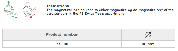 Il magnetizzatore/Smagnetizzatore PB-500 è un utilissimo accessorio per poter mantenere in posizione sulla punta dei giraviti le viti durante il loro posizionamento .
