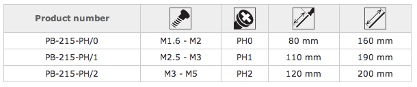 Gli steli intercambiabili serie PB-215 sono abbinabili all'impugnaturta PB-215 ed alla impugnatura dinamometrica PB Swiss Tools DigiTorque® PB-8320-A-1.0-5.0