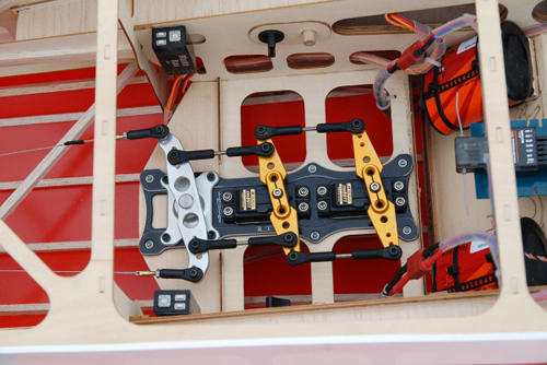 This is a CNC machined Rudder 3_Tray that features a 4.0" Servo Arm with multiple M3 bolt output mounting holes.