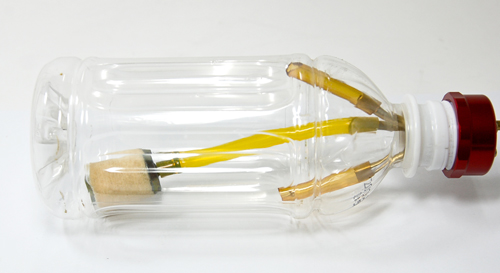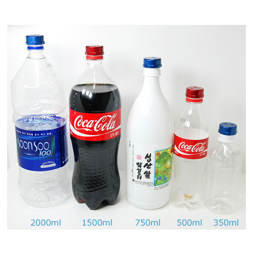 Any beverage bottle made of polyethylene terephthalate material available easily (such as used for Coca-Cola and Pepsi cola beverages) may be used.