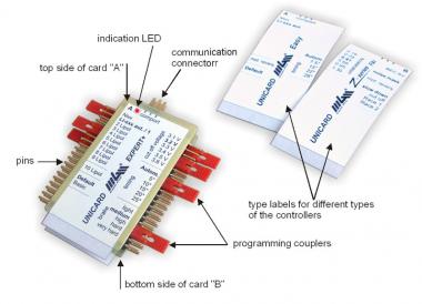 4- Switch on the controller - communication between the card and the controller will be carried out automatically and required parameter setting will be transferred to the controller. During data transfer green LED blinks. The green LED stays lit up when data transfer is finished correctly - now UNICARD+ may be removed, programming is finished